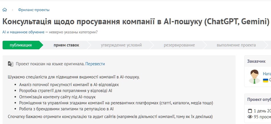 Шукаємо спеціаліста для підвищення видимості компанії в AI-пошуку.